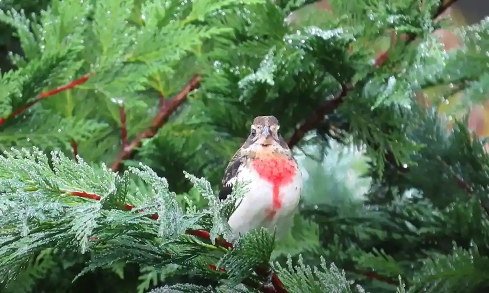 So if you’re asking, “Is the black and white bird with red chest female the same bird?”—the answer is no. The female rose-breasted grosbeak looks completely different from the male.
